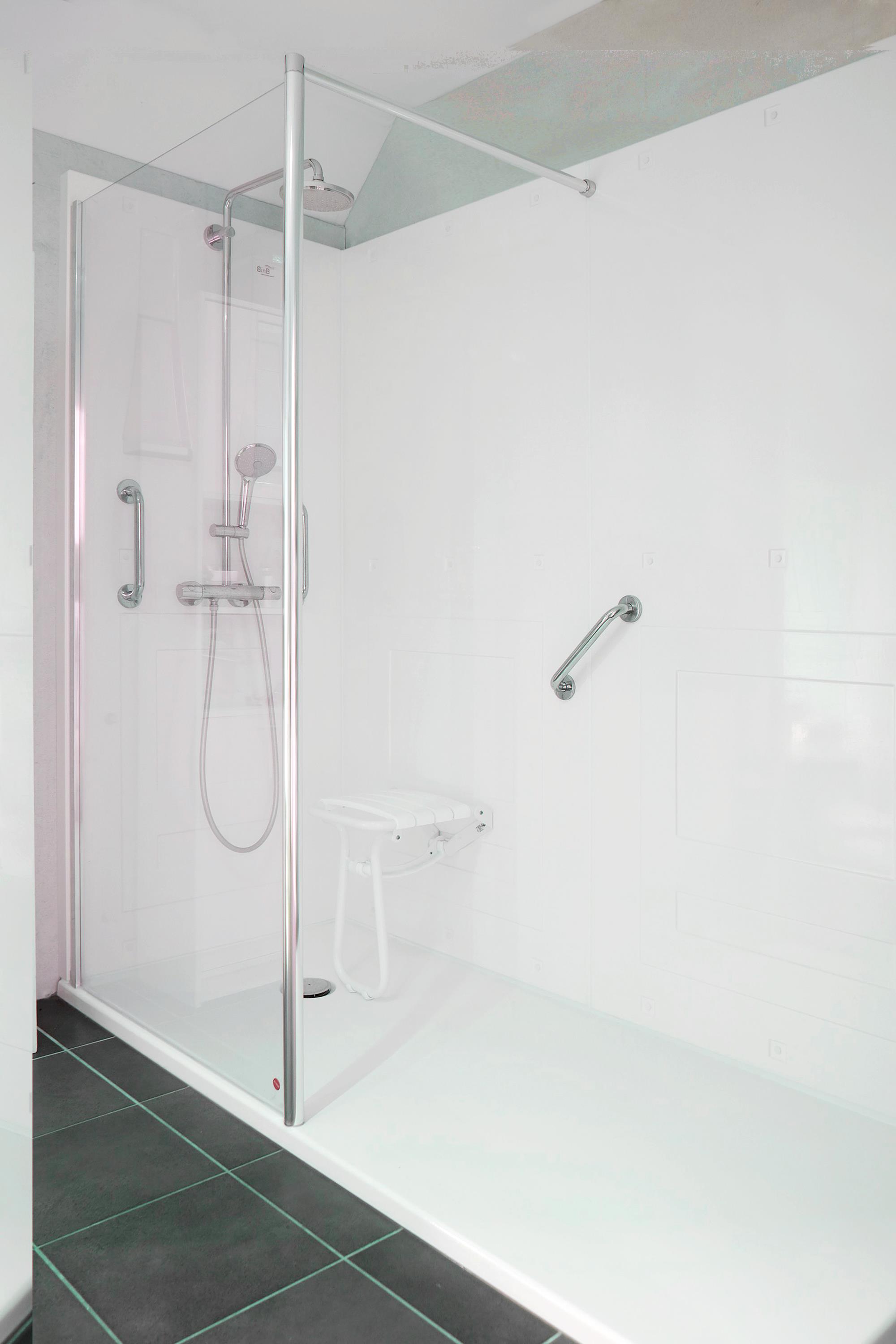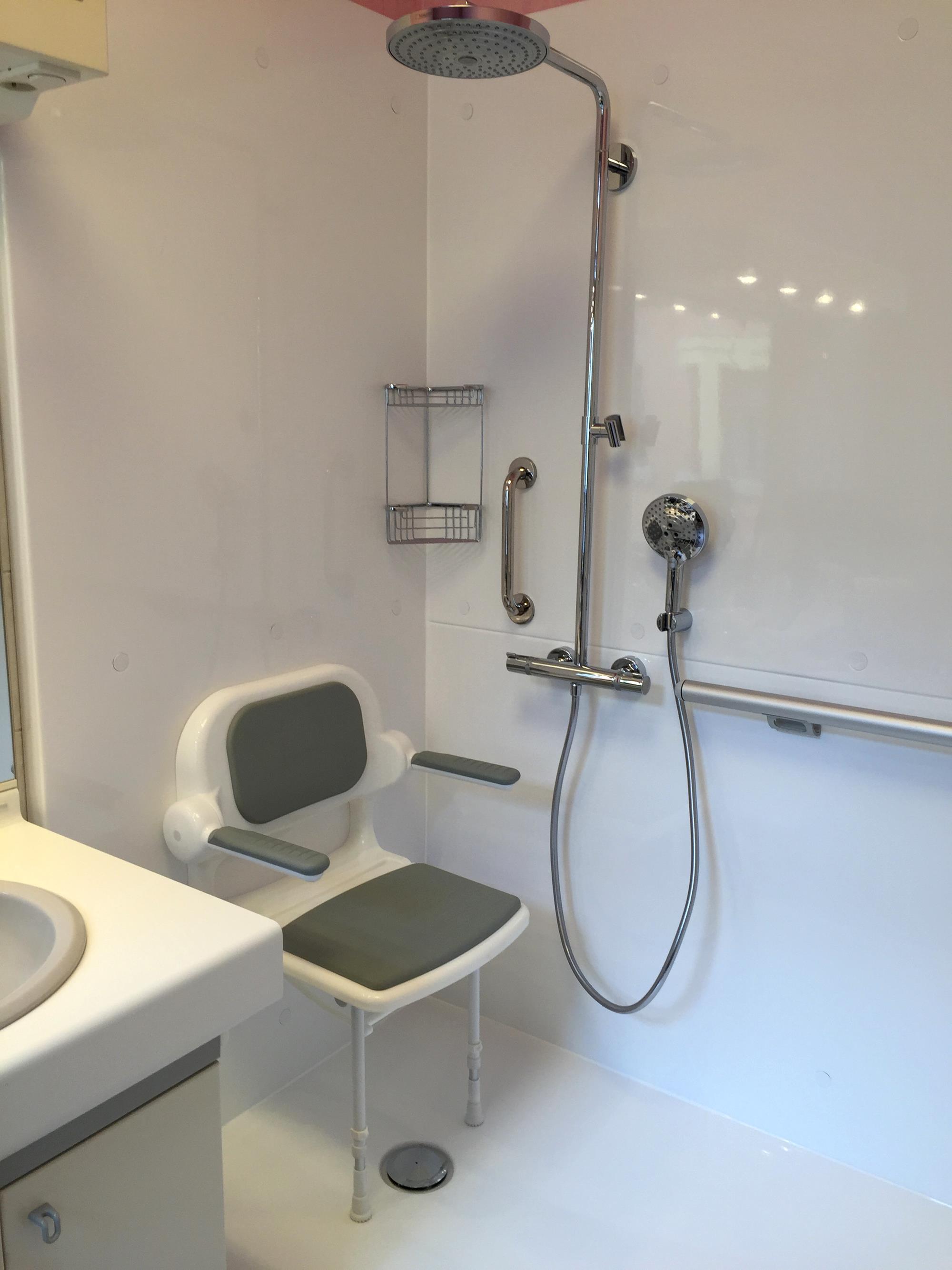 Douche adaptée avec tabouret amovible